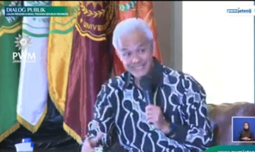 TANGERANG SELATAN, anewsidmedia.com – Calon presiden nomor urut 3, yakni Ganjar Pranowo menghadiri acara dialog publik Muhammadiyah di Universitas Muhammadiyah Jakarta (UMJ), Tangerang Selatan, Kamis, 23 November 2023.
