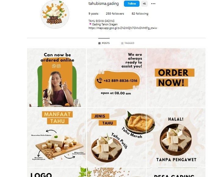 Berangkat dari latar belakang Desa Gading yang memiliki UMKM potensial salah satunya adalah Tahu Bisma membuat mahasiswa KKN tertarik untuk memasarkan Tahu Bisma ini melalui instagram dan facebook dengan membuat akun instagram @tahubisma.gading dan akun facebook @TahuBisma Gading.